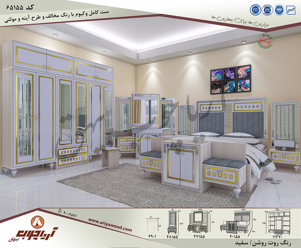 رنگ روت روشن/سفید , ام دی اف وکیوم با رنگ مخالف , آینه و طرح مولتی