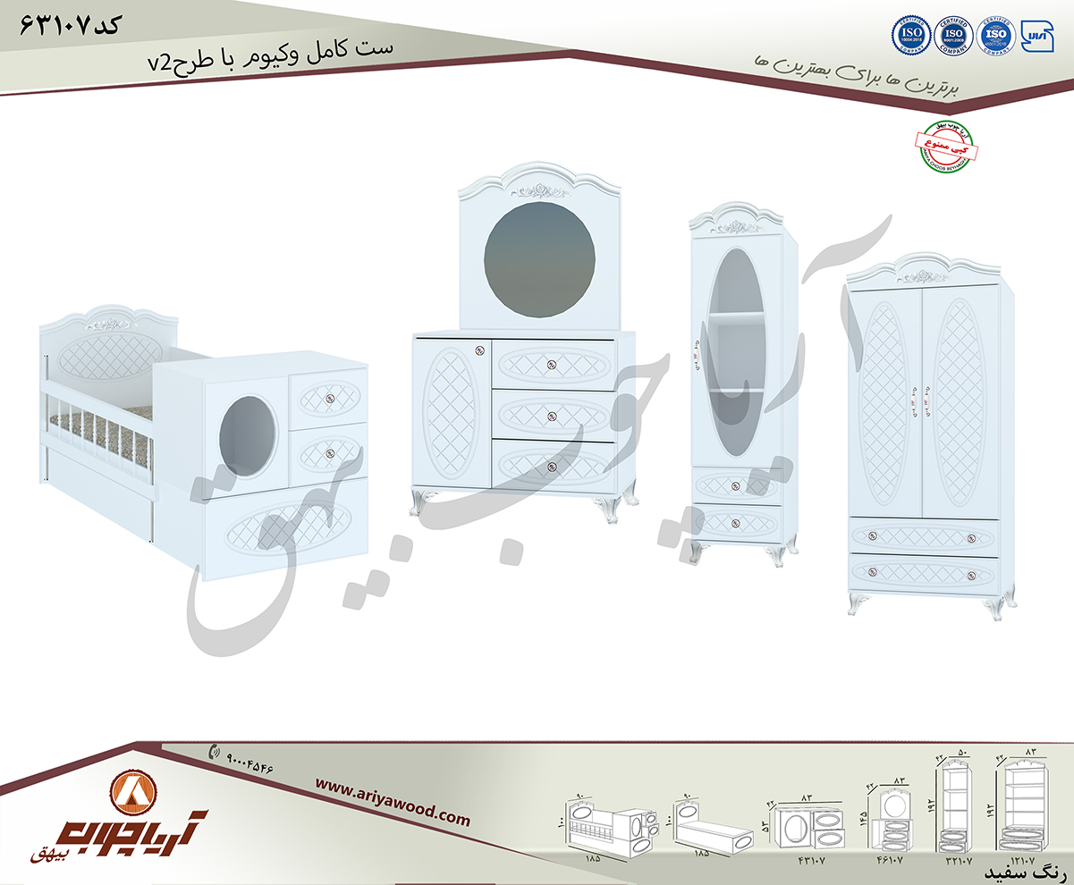 جنس ملامینه/نما ام دی اف وکیوم با طرح v2/رنگ سفید
