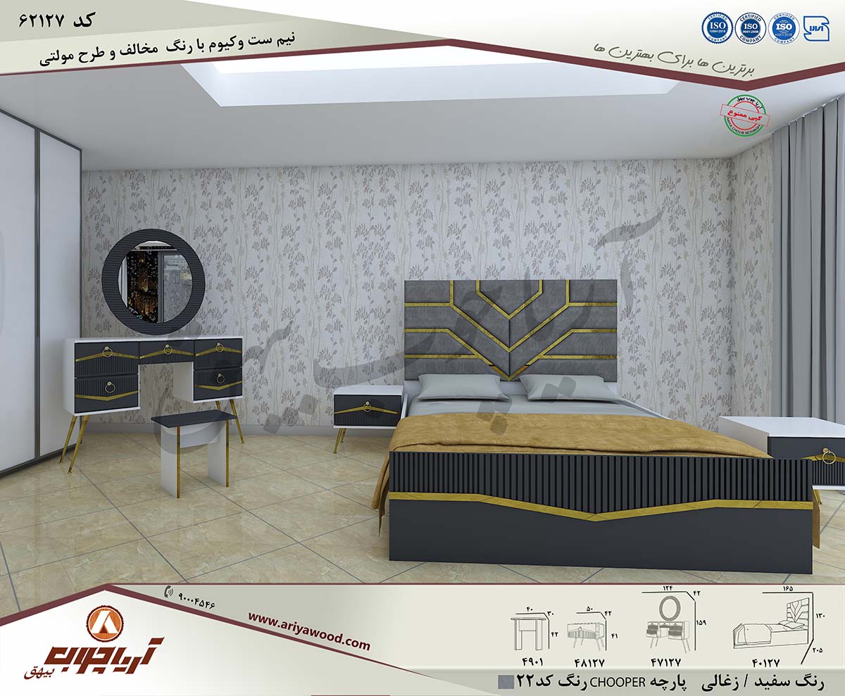جنس: ملامینه/نما ام دی اف وکیوم - پارچه: Chooper رنگ کد22- رنگ:سفید/ذغالی
