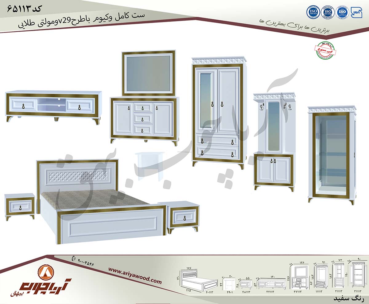 جنس: ملامینه/نما ام دی اف وکیوم-طرح: v29 ومولتی طلایی- رنگ:سفید