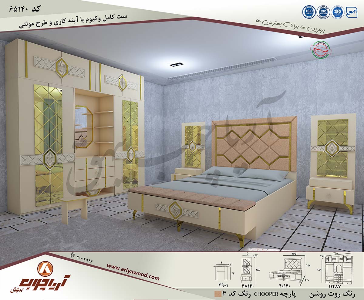 جنس:ملامینه/نما ام دی اف وکیوم/پارچه chooper کد4_ طرح مولتی و آینه کاری_رنگ:روت روشن