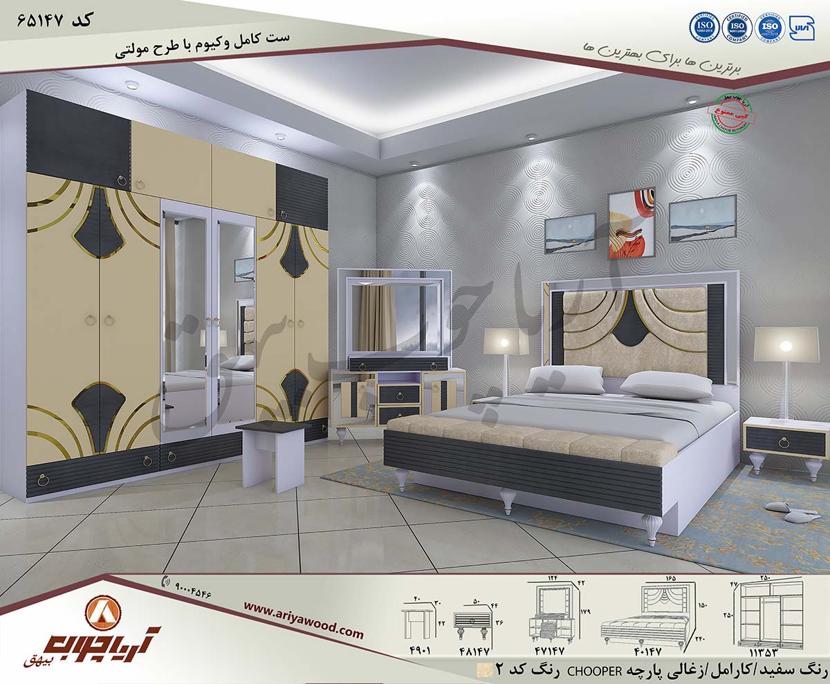 جنس: ملامینه/نما ام دی اف وکیوم/پارچه CHOOPER کد2_ طرح مولتی_رنگ: سفید /کارامل/زغالی