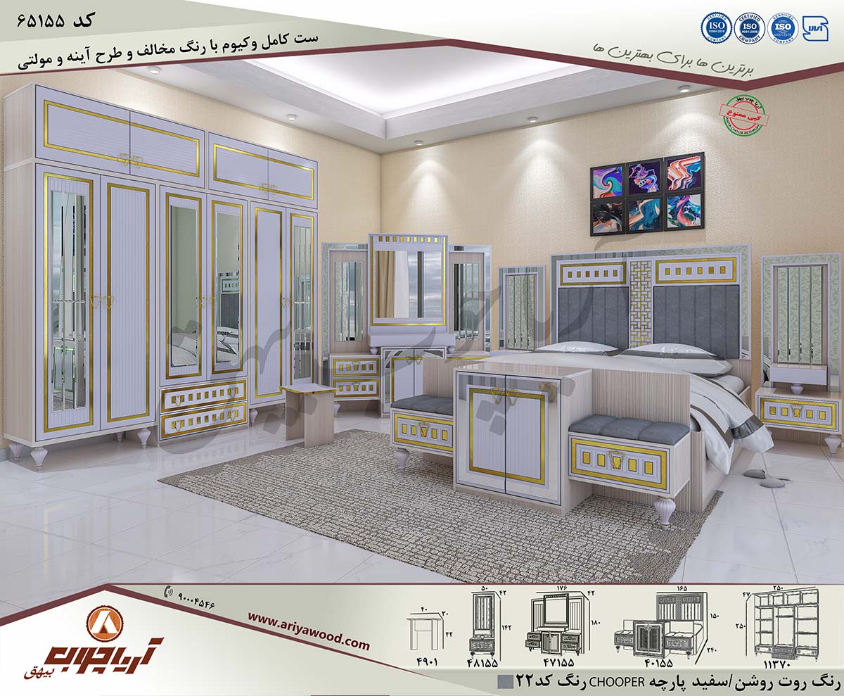 جنس:ملامینه/نما ام دی اف وکیوم/پارچه CHOOPER کد 22 _ طرح آینه و مولتی_ رنگ:روت روشن/سفید