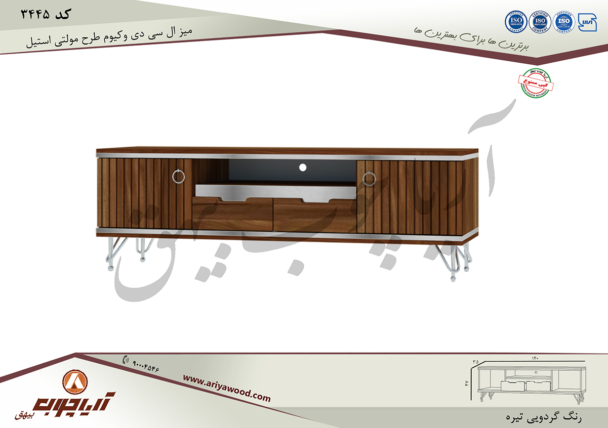 جنس ملامینه/نما ام دی اف وکیوم/ طرح مولتی استیل/رنگ گردویی تیره